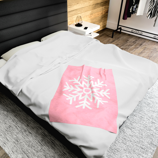 White Snowflake Design Pink Christmas Blanket